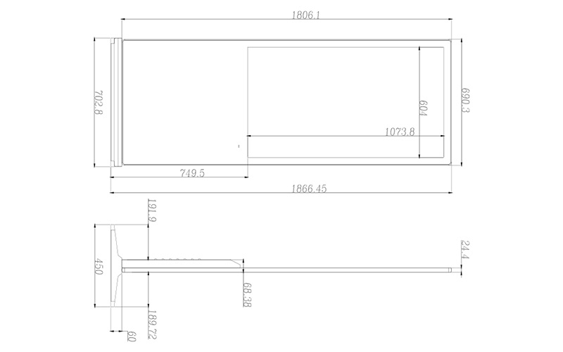 | 外觀尺寸 | 1866.45x702.8x24.4mm | 底座紙箱尺寸 機(jī)身紙箱尺寸 |