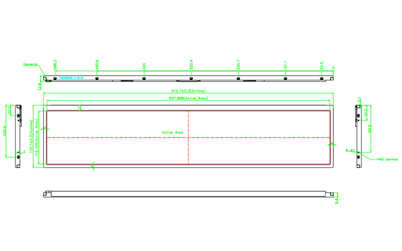 | 顯示區(qū)域 | 597.888 × 112.104 mm | 可視角度 | 89/89/89/89(cr≥10)(上下左右) |